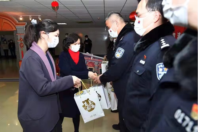 1月27日,同心共创文明城 新春祝福进警营的活动在上海公安黄浦分局进行。区委常委、宣传部长,副区长、区公安分局党委书记、局长,区政协党组副书记、副主席向基层民警送新春祝福。活动中,我们公司的代表为抗疫一线的民警们赠送了抗疫物品。黄浦区宣传部和政协的领导由衷地表示感谢之情并颁发感谢信。