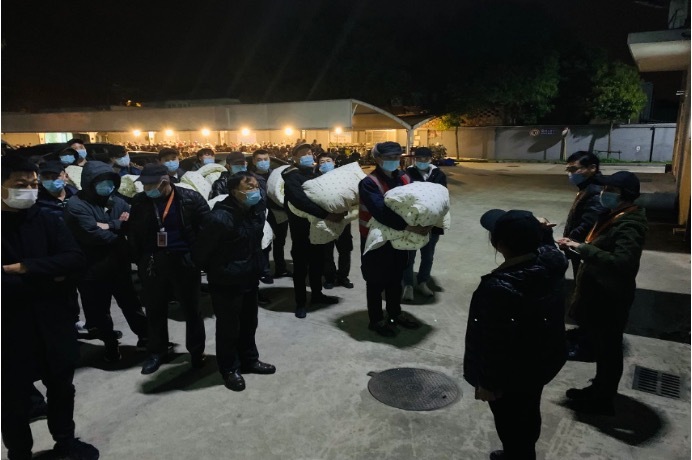 为了保障社会生活必需品的基本供应,罗森门店店员坚守岗位,为门店进行货物配送的物流中心也在不间断地运行。物流中心员工克服困难,共同努力。所有坚守在一线的员工全部居住在公司。虽然环境简陋,但为了上海防疫的可控,供保的持续进行,他们毫无怨言。